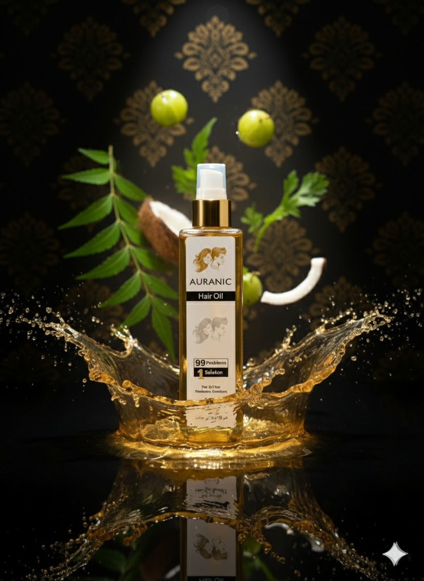 Introducing Auranic Hair Oil, a holistic solution for all your hair concerns. Whether you're dealing with hair thinning, frizz, dryness, or damage, Auranic Hair Oil provides a natural, nourishing remedy. Infused with a blend of carefully selected ingredients like coconut oil and neem leaves, it hydrates, strengthens, and promotes healthier hair from root to tip.